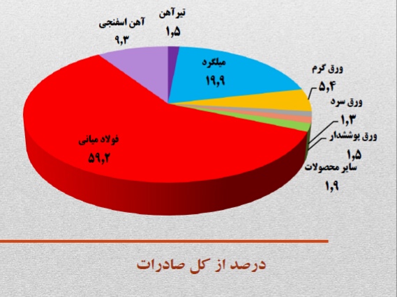 سهم صادرات ورق گرم ۵.۴ درصد بود و سهم تیرآهن و ورق پوششدار هر یک ۱.۵ درصد بوده است.