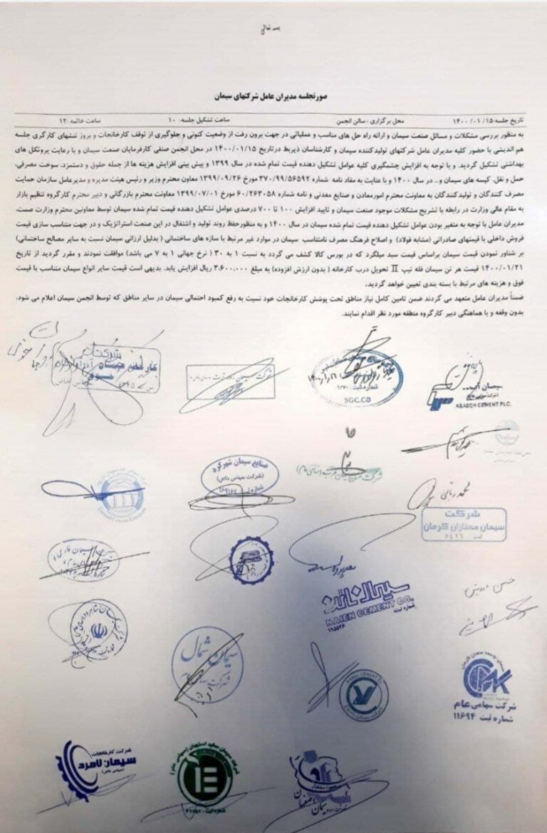 تصویر صورتجلسه مدیران عامل شرکتهای سیمانی را ببینید: