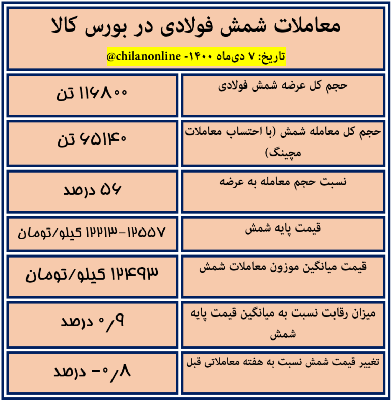 - نتیجه معاملات شمش فولادی در بورس کالا/ ۱۳۰۹۴ آخرین قیمت شمش فولادی