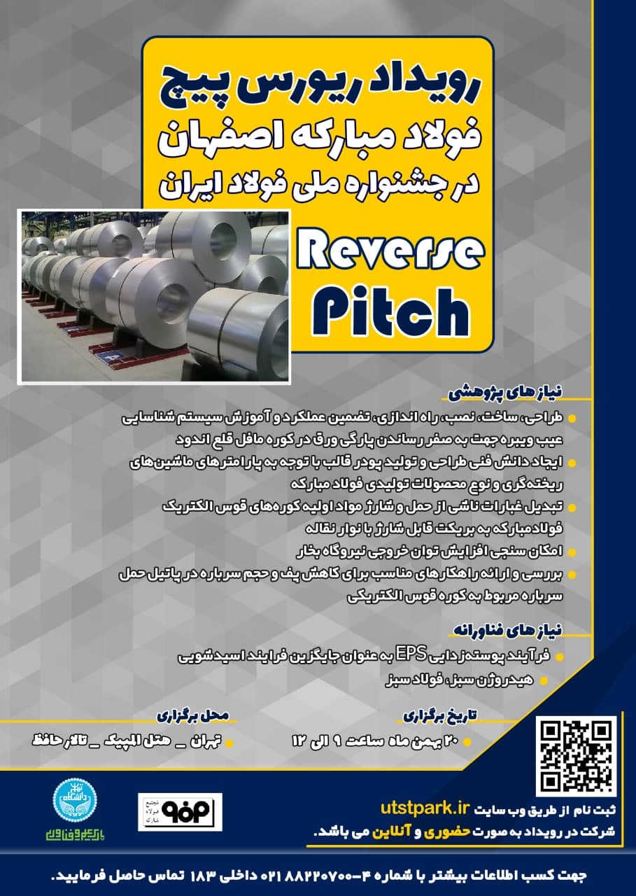 به گزارش چیلان ،شرکت فولاد مبارکه اصفهان در راستای نیل به اهداف توسعه پایدار خود قصد دارد از ظرفیت شرکتهای دانش بنیان، صاحبان ایده، اساتید و دانشجویان در جهت رفع نیازهای پژوهشی و فناورانه موجود در صنعت فولاد کشور استفاده نماید. از این رو در بهمن ماه سال ۱۴۰۰ و همزمان با جشنواره ملی فولاد با برگزاری رویداد ریورس پیچ (Reverse Pitch) به ارائه چالشهای موجود در فولاد مبارکه خواهد پرداخت.