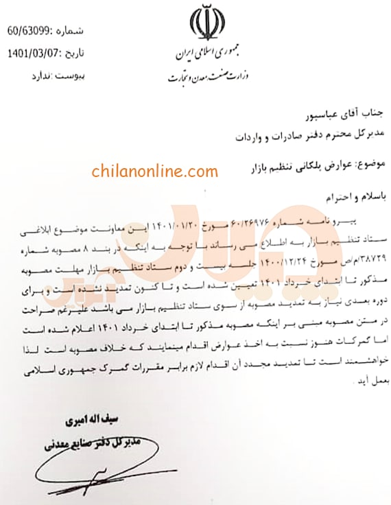 تصویر نامه دفتر صنایع معدنی وزارت صمت را در زیر ببینید.