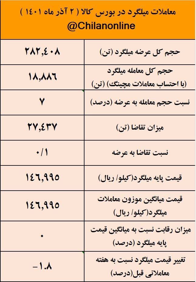 امروز چهارشنبه ۲ آذرماه، بورس کالا میزبان عرضه ۲۸۲ هزار تن میلگرد ساختمانی بود که با احتساب معاملات مچینگ، فقط ۱۸ هزار تن معادل ۷ درصد از این عرضهها مورد معامله قرار گرفت!