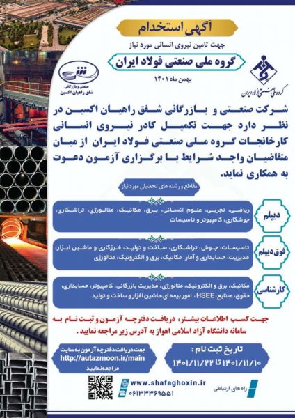 - فراخوان جذب نیرو در یک شرکت فولادی