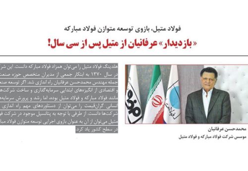 مهندس محمد حسن عرفانیان موسس شرکت فولاد مبارکه و فولاد متیل پس از سی سال در بازدید ازهلدینگ فولاد متیل ضمن آشنایی با دستاوردهای این شرکت در ابعاد بازرگانی و تولید خطاب به مدیران و کارکنان این شرکت به فلسفه وجودی این شرکت اشاره داشت.