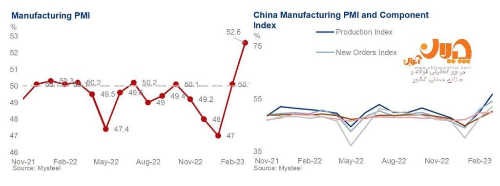 به گزارش چیلان ، شاخص مدیران خرید بخش تولید چین با ۲.۵ درصد افزایش ماهانه به ۵۲.۶ درصد رسید. این شاخص که به خوبی رشد داشته از ۵۰ درصد فراتر رفته است.