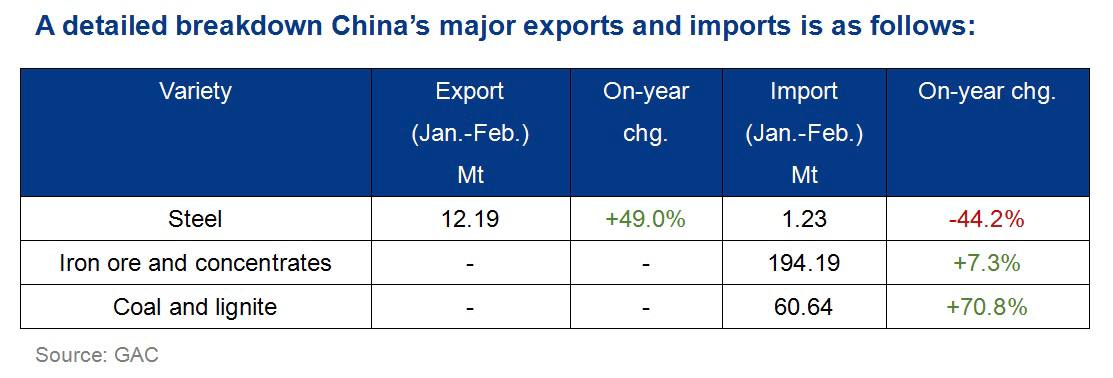 واردات سنگ آهن و کنسانتره ۷.۳ درصد و واردات زغال و لیگنیت ۷۰.۸ درصد افزایش سالیانه داشته است.
