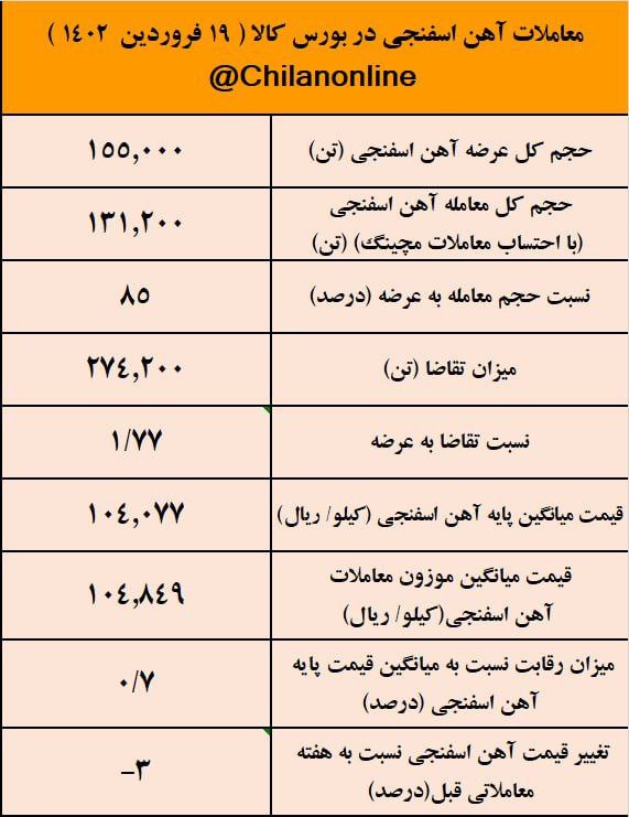 به گزارش چیلان ،به گزارش چیلان ، امروز ۱۹ فروردین ماه ۱۴۰۲، بورس کالا میزبان عرضه ۱۵۵ هزار تن آهن اسفنجی بود که با توجه به ثبت تقاضای ۱.۷ برابری نسبت به عرضه، ۸۵ درصد این عرضه ها مورد معامله قرار گرفت.