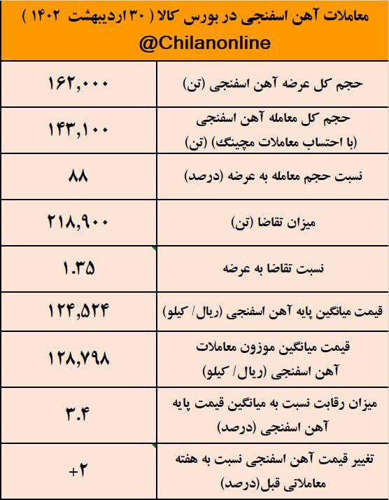 به گزارش چیلان ، امروز ۲۳ اردیبهشت ۱۴۰۲، بورس کالا میزبان عرضه ۱۶۲ هزار تن آهن اسفنجی بود که با توجه به ثبت تقاضای ۱.۳۵ برابری نسبت به عرضه، تقریبا کل عرضهها مورد معامله قرار گرفت.
