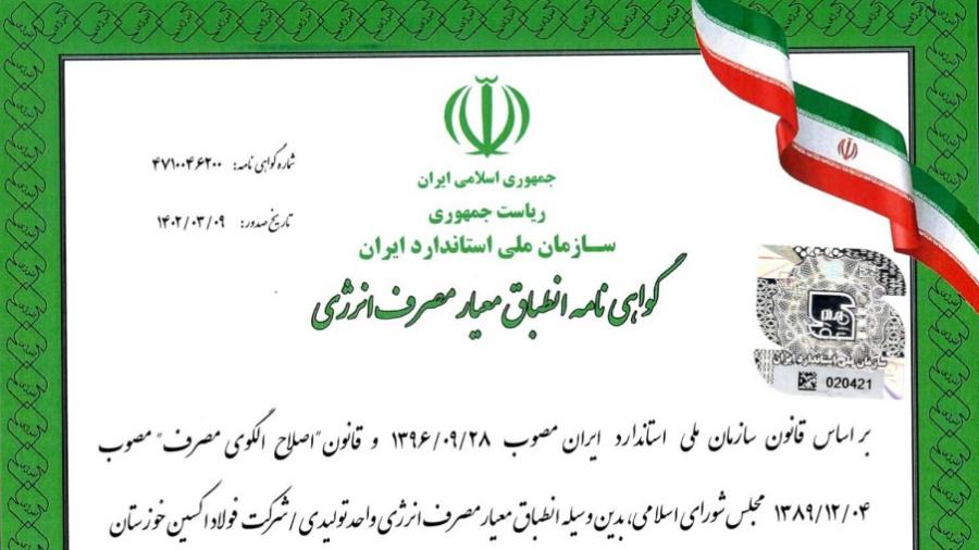به گزارش چیلان ،بر اساس استاندارد ملی ایران به شماره ۹۶۵۳، مصرف انرژی شرکت فولاد اکسین خوزستان برای فرآیند تولید آهن و فولاد در بازه زمانی سال ۱۴۰۰ با معیارهای تعیین شده منطبق بوده، به همین جهت گواهینامه انطباق معیار مصرف انرژی به شرکت تعلق یافت.