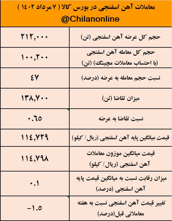 به گزارش چیلان ، امروز ۷ مردا ۱۴۰۲ بورس کالا میزبان عرضه ۲۱۲ هزار تن آهن اسفنجی بود که با توجه به ثبت تقاضای ۰.۶۵ برابری نسبت به عرضه، ۴۷ درصد عرضهها مورد معامله قرار گرفت.