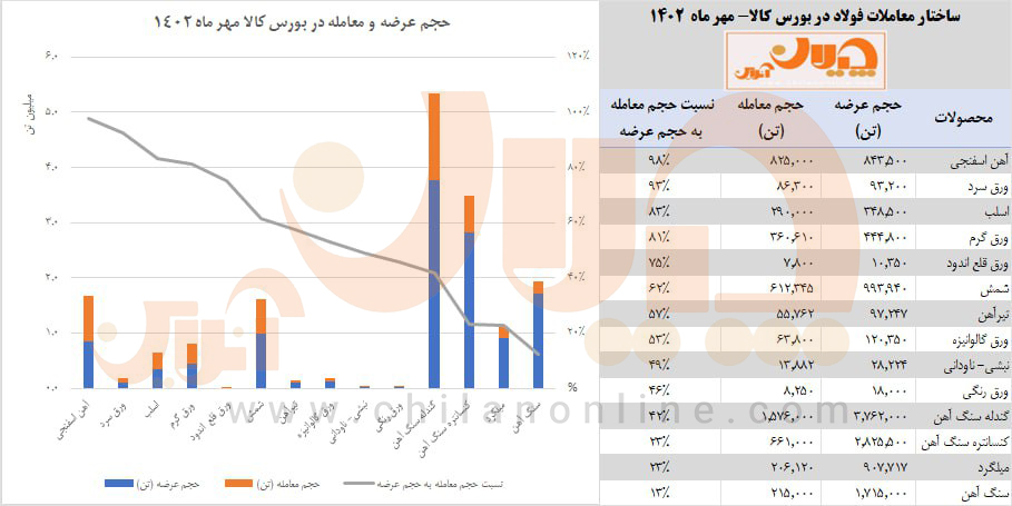 «تحلیل معاملات فولاد» بورس کالا در مهرماه ۱۴۰۲ / کدام محصولات در صدر معاملات قرار دارد؟ + جزئیات و نکات مهم عرضه و تقاضای محصولات زنجیره فولاد