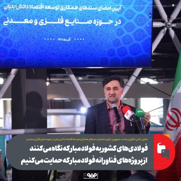 به گزارش چیلان ، روحاله دهقانی فیروزآبادی، معاون علمی، فناوری و اقتصاد دانشبنیان ریاست جمهوری درآیین امضای سندهای همکاری توسعه اقتصاد دانشبنیان در حوزه صنایع فلزی و معدنی گفت:در دوره چهارم معاونت علمی، فناوری و اقتصاد دانشبنیان ریاست جمهوری، دو رویکرد جدی و مستقل داریم که عبارت است از توسعه فناوری با نگاه کاشتن برای آینده و ایجاد ستادهای توسعه اقتصاد دانشبنیان با هدف نفوذ فناوریها به بخشهای صنعت و اقتصاد واقعی کشور. قانون جهش تولید دانشبنیان که در مجلس به تصویب رسید، باقیاتالصالحاتی برای این مجلس است و امیدوارم همه کسانی که در این حوزه دخیل هستند به این قانون پایبند باشند.