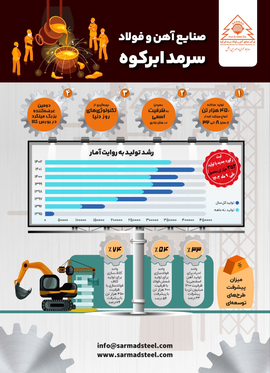 ثبت رکورد جدید تولید ۳۵۳هزار تن محصول طی ۹ ماه نخست سال توسط فولاد سرمد