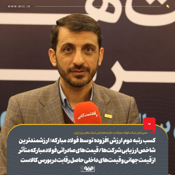 شایان ذکر است بیست و ششمین همایش شرکتهای برتر ایران در اولین روز بهمن ۱۴۰۲ در سالن همایشهای بینالمللی سازمان صدا و سیما و با حضور سید احسان خاندوزی وزیر امور اقتصادی و دارایی، عباس علی آبادی وزیر صمت، جمعی دیگر از مسئولان و صاحبان بنگاههای اقتصادی برتر کشور برپا شد و شرکت فولاد مبارکه توانست رتبه اول از نظر شاخص فروش در گروه فلزات آهنی، رتبه دوم در شاخص ارزش افزوده، سودآوری و ارزش بازار، رتبه هشتم در شاخص فروش و رتبه سوم در اشتغالزایی را به خود اختصاص دهد.