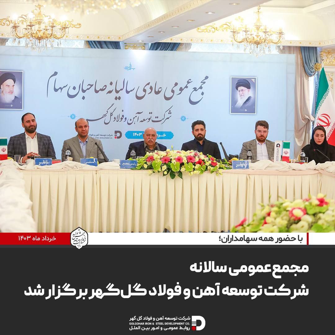 به گزارش چیلان ،مجمع عمومی عادی سالانه شرکت توسعه آهن و فولاد گل گهر ۹خرداد با حضور صددرصدی سهامداران این شرکت برگزار شد.