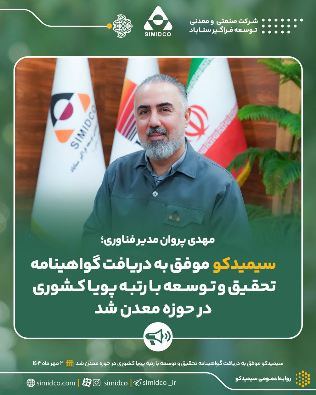 - سیمیدکو برنده سیزدهمین دوره جایزه ملی مدیریت مالی ایران شد