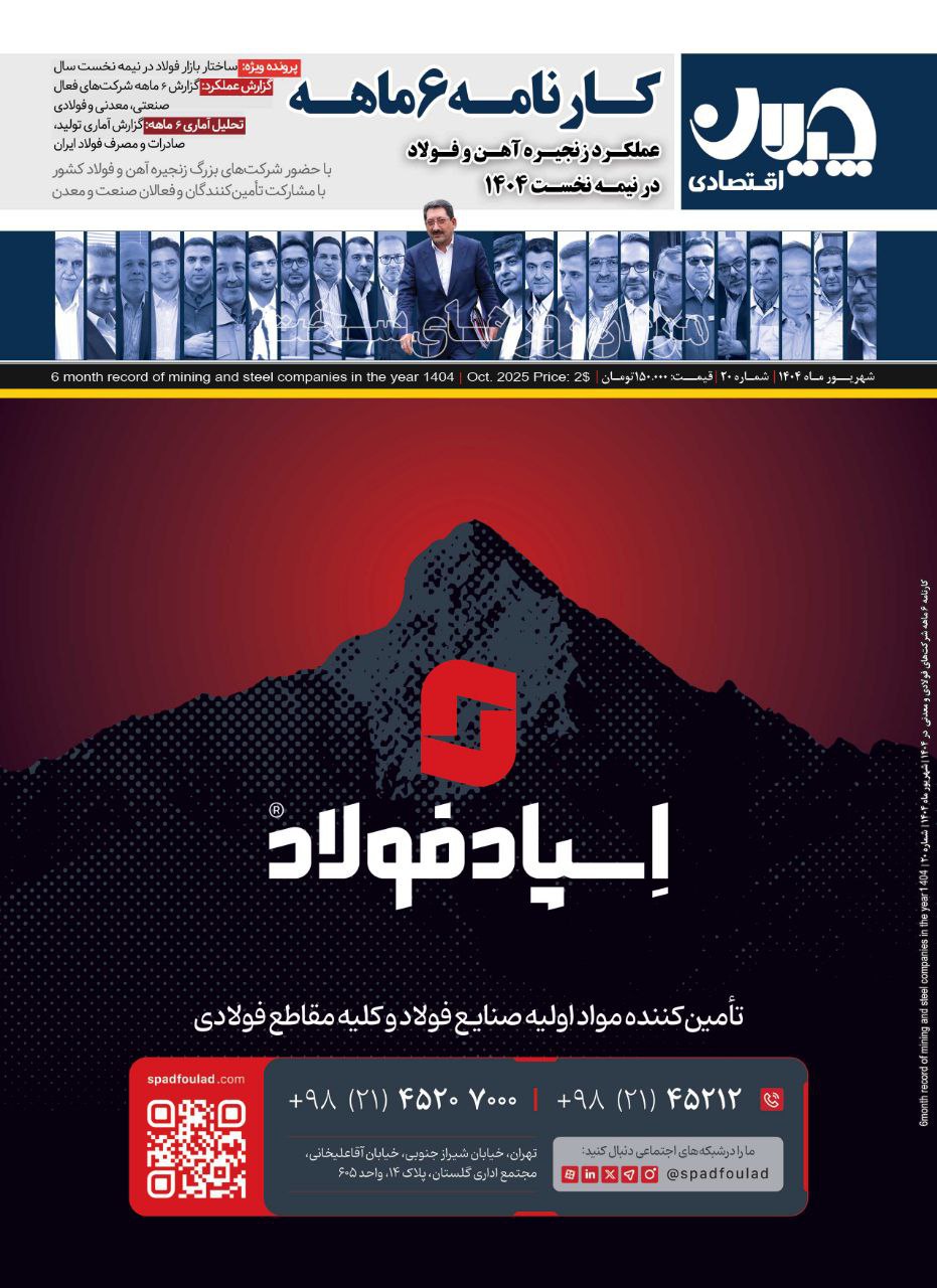 این ویژهنامه تخصصی که برای توزیع در سمپوزیوم و نمایشگاه بینالمللی فولاد و کیش اینوکس در بین فعالان فولادی و معدنی کشور و صنایع مرتبط آماده شده است، شامل تحلیل آماری، گفتوگوها، یادداشتها و گزارشهایی از صاحبنظران، مدیران و فعالان معدنی و فولادی است که با محوریت عملکرد شرکتها در نیمه اول سال ۱۴۰۴ چاپ شده است.