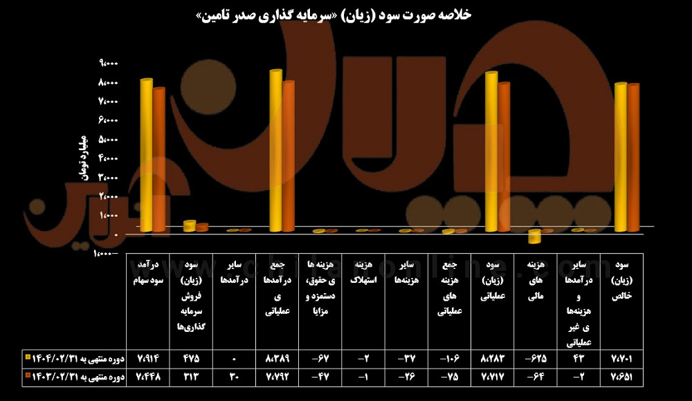 شرکت سرمایهگذاری صدر تأمین در این دوره ۱۲ ماهه موفق به ثبت سود عملیاتی ۸ هزار و ۲۸۳ میلیاردتومانی شد که نسبت به دوره مشابه ۷ درصد افزایش را تجربه کرد. سپس با کسر هزینههای مالی از سود عملیاتی، سود خالص این دوره یک ساله «تاصیکو» به دست آمده که بر اساس این محاسبه صورتگرفته، شرکت توانسته است در پایان سال مالی منتهی به اردیبهشت سال ۱۴۰۴، بالغ بر ۷ هزار و ۷۰۱ میلیارد تومان سود خالص شناسایی کند که در مقایسه با سال گذشته حدود یک درصد افزایش داشته است.
